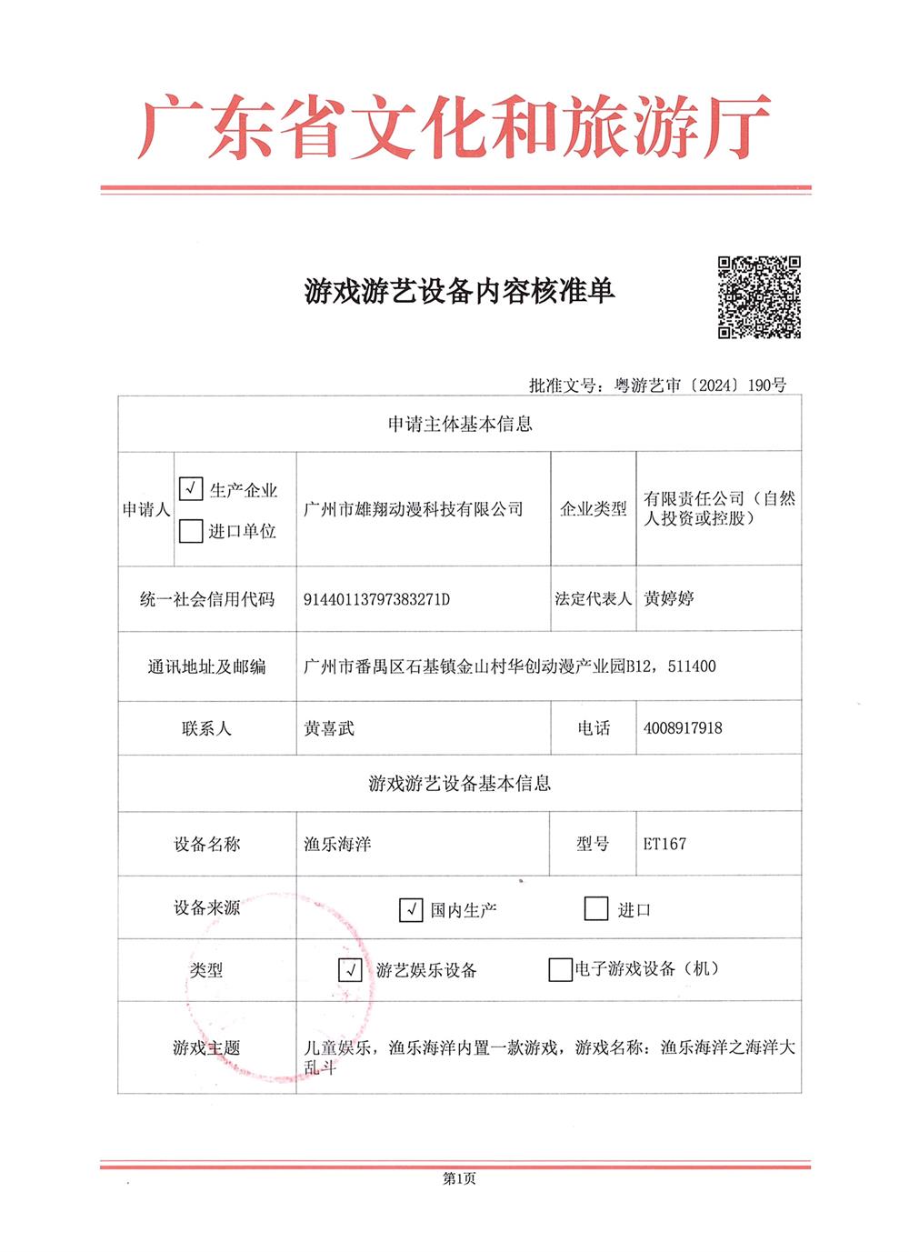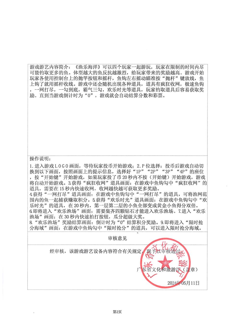 渔乐海洋 粤游艺审(2024)190号