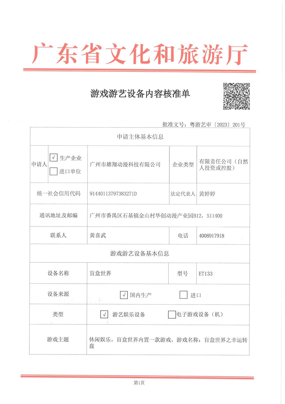盲盒世界 粤游艺审(2023)201号