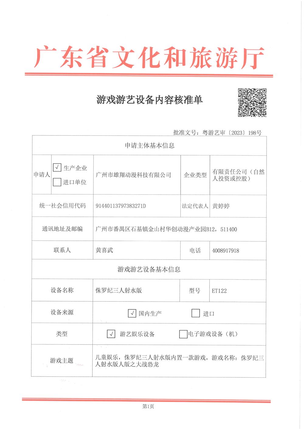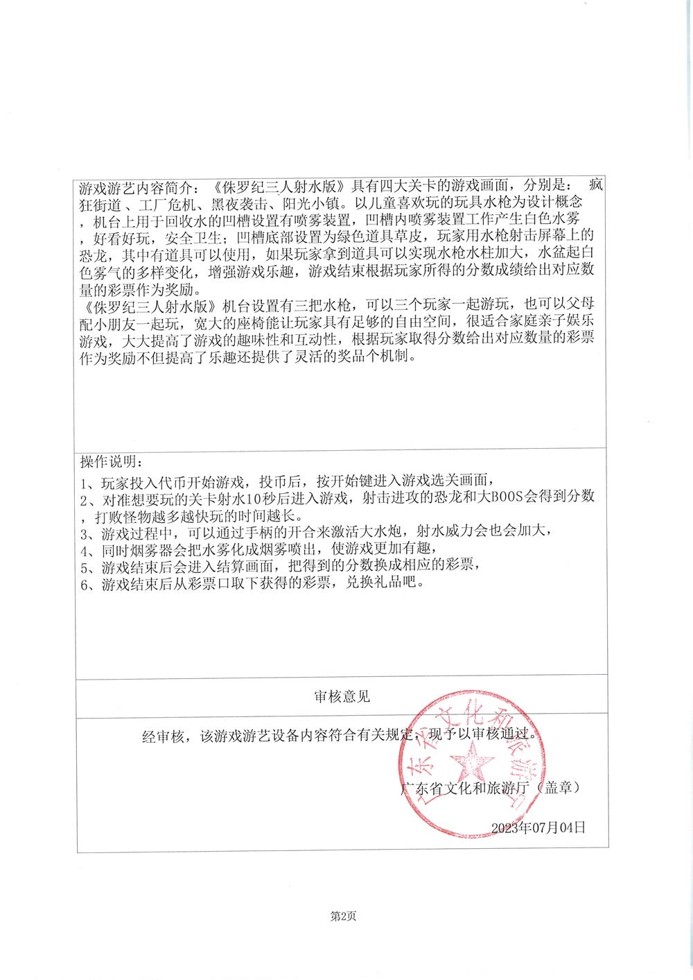 侏罗纪三人射水版 粤游艺审(2023)198号