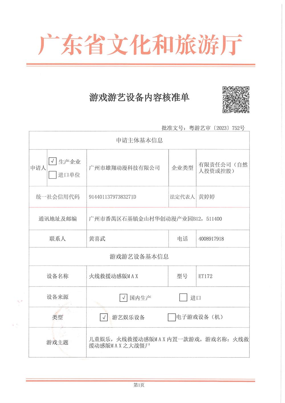 火线救援动感版 粤游艺审(2023)752号