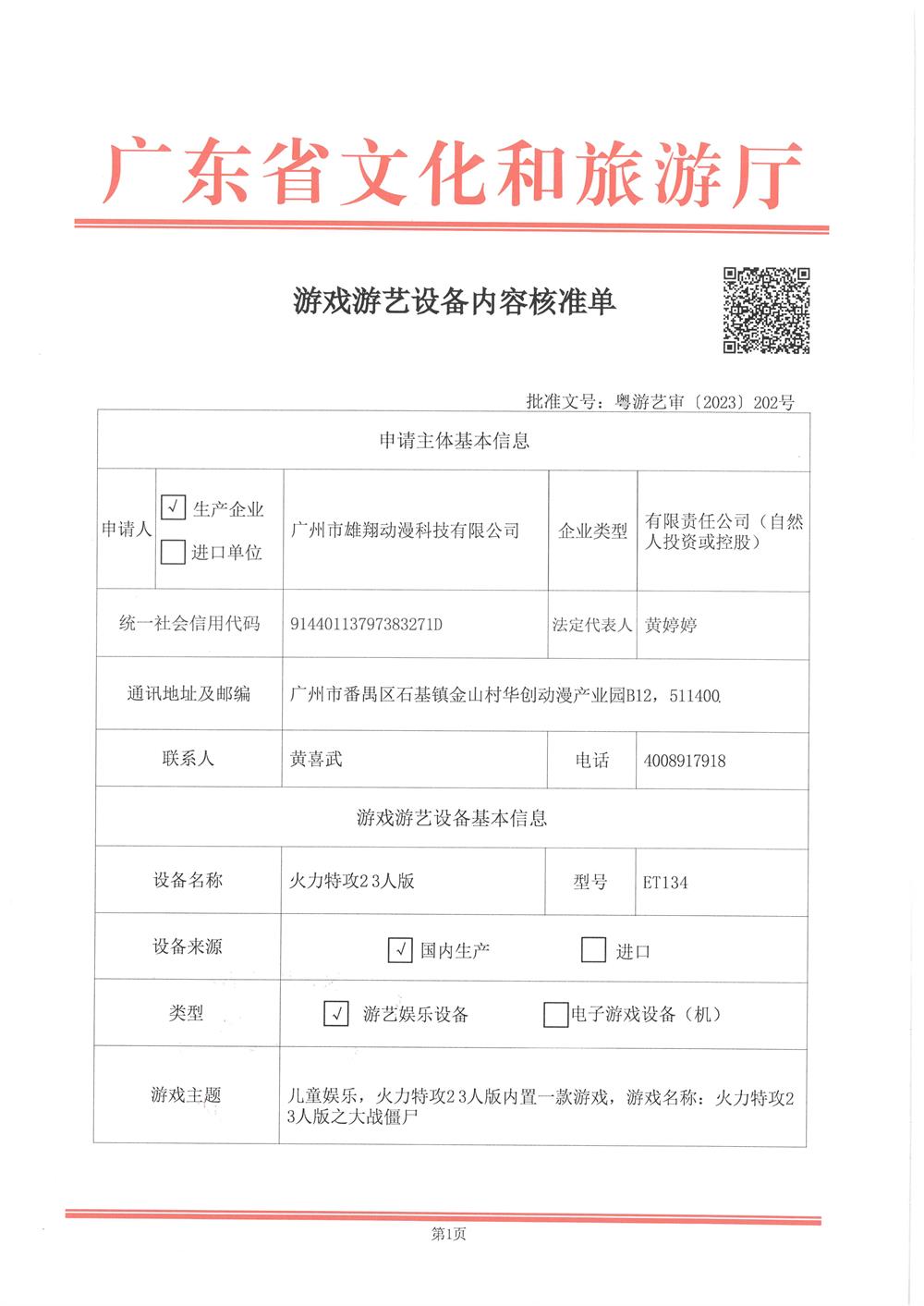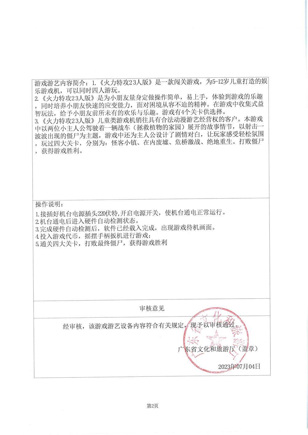 火力特攻2-3人版 粤游艺审(2023)202号